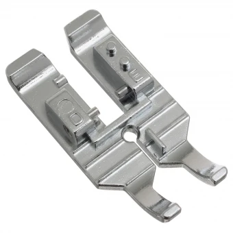 Durch die Aussparung auf der hinteren Seite des Nähfußes kann der Obertransport aktiviert werden, um mehrere Stofflagen gleichmäßig zu transportieren.