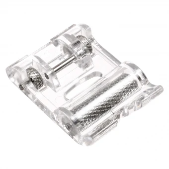 Der BERNETTE Rollenfuß eignet sich perfekt zum Nähen schwer gleitender und haftender Materialien. Die Rolle an der Nähfußunterseite verhindert dabei das Klebenbleiben am Fuß und sorgt für einen fließenden Transport. Speziell bei schwierigem Material wie beispielsweise Leder, Wildleder, Vinyl und andere beschichtete Stoffe empfiehlt sich die Verwendung dieses Rollenfußes.
