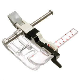 Der BERNETTE Zickzack-Nähfuß mit Führung ermöglicht Nähen mit exaktem Abstand von bis zu 30 mm zu einer Stoffkante oder bereits genähten Naht. Der Führungsarm hat dabei die gebräuchlichsten Nahtzugaben von 10, 15, 20, 25 und 30 mm schon markiert und kann schnell eingestellt werden. Auch ideal geeignet zum Quilten paralleler Linien oder zum Absteppen.