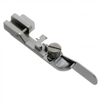Der Blindstichfuss bestitzt eine einstellbare, seitliche Führung, die das Nähen von Blindsäumen erleichtert. Diese Führung ist auch hilfreich beim Nähen der Flachnaht sowie bei Weissstickerei-Anwendungen.