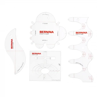 In dem BERNINA Formschablonen-Set Kurven und Muscheln sind vier verschiedene Formschablonen enthalten, die speziell für BERNINA Langarm-Maschinen der Q-Serie geeignet sind. Durch die Verwendung der Schablonen und einem BERNINA Rulerfuß können im Handumdrehen effektvolle Quiltmuster kreiert werden. Die 1/4″ Schablonen sind einfach zu führen und lassen sich bequem mit dem Quiltmuster unter dem Rulerfuß bewegen. Auf den Schablonen befinden sich außerdem noch praktische Linien, die besonders bei sich wiederholenden Mustern zur Ausrichtung hilfreich sind.