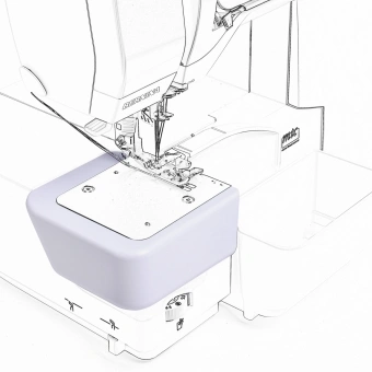 Die Freiarmabdeckung für die BERNINA L 850 schließt die Freiarmabdeckung, damit eine durchgehende Arbeitsfläche geschaffen wird. Die Stichplatte bleibt trotz der Abdeckung leicht zugänglich.