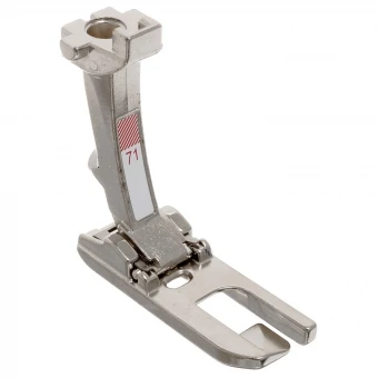 Der BERNINA Kapperfuß Nr. 71 ist für Kapp- und Flachnähte bei schweren Stoffen geeignet. Für Kappnähte mit einer Breite von 6 mm.