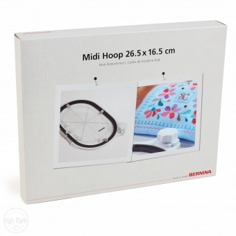 Der BERNINA Midi-Stickrahmen 26,5 x 16,5 cm ermöglicht präzises Arbeiten mit großen Stickmustern, ohne dass der Stoff im Stickrahmen umgespannt werden muss.