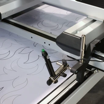 Um die Form des Rahmens optimal auszunutzen, haben sich sogenannte Pantographenmuster etabliert. Es sind lange Bahnen von Papiervorlagen, die auf die Ablage des Frames gelegt werden,um sie mit dem Laser abzufahren. Der Pantograph von BERNINA kann wahlweise aber auch vorgefertigte Schablonen mit Hilfe des Stylus nachfahren.