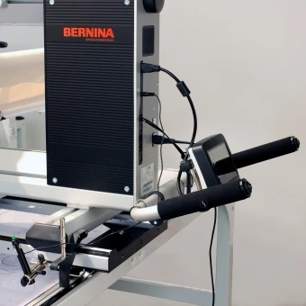 Für eine komfortable Bedienung von hinten verfügt das Kit über ein zweites Display, das nur an die Q16 oder Q20 angeschlossen wird. So muss die Longarm-Maschine nur eingefädelt und der Anfangsfaden vernäht werden, ab dann wird das Muster von hinten gequiltet und man muss sich nur auf den Verlauf der Vorlage konzentrieren.