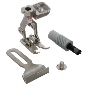 Im Lieferumfang ist ein bewegliches Kantenlineal enthalten, welches Sie separat am Freiarm der Nähmaschine montieren können, dadurch sind exakt gerade Nähte garantiert.