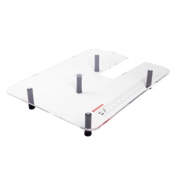 Mit dem BERNINA Quiltanschiebetisch aus Plexiglas wird das Arbeiten an großen Quilt-Projekten wie Überwürfen, Decken oder Wandbehängen erleichtert. Das Gewicht des Quilts wird gleichmäßg auf der gesamten zusätzlichen Arbeitsfläche des stabilen Tisches verteilt und der Stoff lässt sich auf seiner glatten Oberfläche ausgezeichnet hin und her schieben.
