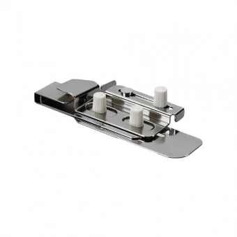 Das Saumnähzubehör für Cover-Stich besitzt eine stufenlos verschiebbare Führungsschiene. Sie wird an der BERNINA Overlocker eingesetzt und mithilfe von Einstellschrauben sicher fixiert. Das Saumnähzubehör gewährleistet so die Führung von gleichmässigen und absolut parallel verlaufenden vorgefalteten Stoffen. Damit lassen sich schmale und breite Cover-Stich-Arbeiten mit zwei oder drei Nadeln anfertigen.
