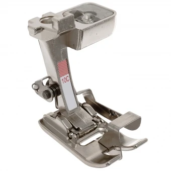 Der BERNINA Schmalkantfuß 10C ist ideal um fertige Kanten gleichmäßig und gerade abzusteppen und eignet sich durch seine Beschaffenheit hervorragend zum Annähen von Spitzen und Bändern.