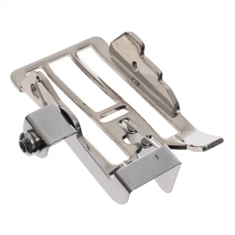 Die Ergänzung zum BERNINA Obertransportfuß Nr. 50 ist die BERNINA Sohle mit mittiger Führung. Durch die Führung in der Mitte eignet sich diese Sohle besonders zum Nähen im Nahtschatten und zum schmalkantigen Absteppen. Die Sohle wird mit einer kleinen Schraube am Obertransportfuß befestigt.