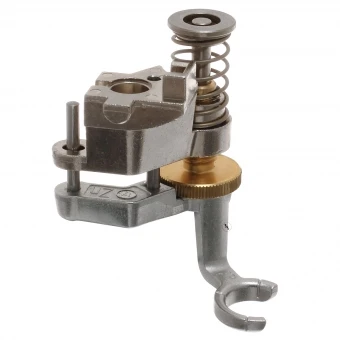 Der offene Fuß und der schlanke Hals bieten eine freie und gute Sicht auf das Nähgut. Durch den vorhandenen Federmechanismus kann der Fuß bei einem eventuellen Zusammenstoß mit der Nadelstange nach unten ausweichen.
