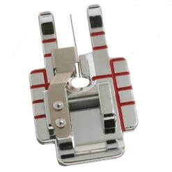 Mit dem BERNINA XL Paspelfuß gelingt es ganz einfach große Paspeln mit einem Durchmesser von 6, 8 und 10 mm selbst zu erstellen und einzunähen. Die Höhenverstellung der Führungsrille lässt sich dabei durch Zusammenpressen und schieben ideal an die Paspeldicke anpassen. So entstehen mühelos dekorative Effekte an Nähprojekten. Für 3-/4-Faden Overlockstiche ist dieser Fuß perfekt geeignet.