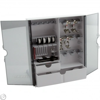 Mit der praktischen BERNINA Zubehörbox ist Ihr Zubehör immer aufgeräumt! Egal ob Nähfüße, Spulen oder Nadeln – Sie können mit dieser Zubehörbox alles geordnet aufbewahren!