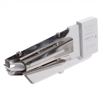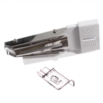 Mit diesem Bandleger von Brother können Sie mit ungefalzten Schrägbändern in einer Breite von 40 mm bis 42mm schnell und professionell Ihre Stoffkante einfassen. Durch diese spezielle Führung wird das Band eingefädelt und während des Nähens gleichzeitig doppelt gefalzt, um Ihre Stoffkante gelegt und festgenäht. Die fertige Breite des Bandes beträgt 12 mm.
