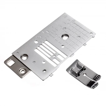 Dieses Set, bestehend aus der Geradstichplatte und dem Geradstichfuß, garantiert Ihnen schöne Steppnähte auch bei besonders feinen Stoffen.