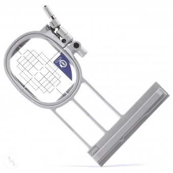 Stickrahmen mit der Stickfläche von 60 x 20 mm für die kleinsten Stickmotive. Auf der Positionierschablone sind mehrere Flächen aufgezeigt (60×20 mm, 50x30mm und 30x40mm)