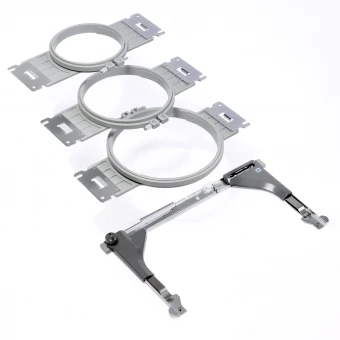 Das BROTHER Rundrahmen-Set mit Halterung C für die VR enthält drei Rahmen mit den Durchmessern von 160 mm, 130 mm und 100 mm. Diese sind vor allemt ür Motive die eine hohe Stabilität erfordern, geeignet. Die Stickrahmenhalterung C ist im Lieferumfang enthalten und muss für alle im Set enthaltenen Rahmen verwendet werden.