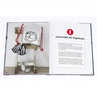 Der klassischen Anwendung „Bügelfolien“ wird ein ganzes Kapitel mit Projekten und Anleitungen gewidmet. Mit dem Plotter lassen sich jedoch auch Stoffe und andere Textilmaterialien, z. B. für Patchwork und Applikationen zuschneiden. Auch hierzu bietet das Buch Beispiele und wertvolle Tipps.