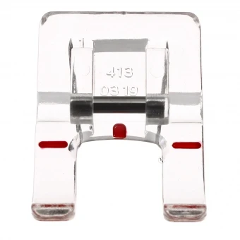 Mit diesem Klarsichtfuß ist die Platzierung von richtigen Nähten keine Kunst. Der HUSQVARNA VIKING Applikationsfuß ist gerade durch die transparente Sohle perfekt zum Applizieren geeignet. Die durchsichtige Partie und die offene Front bieten eine ausgezeichneten Überblick auf den Nähvorgang. Für eine gleichmäßigen Transport sorgen die Aussparungen auf der Nähfuß-Innenseite. Durch die zusätzlichen Markierungen am Füßchen können Satinstiche und Zierstiche exakt genäht werden