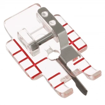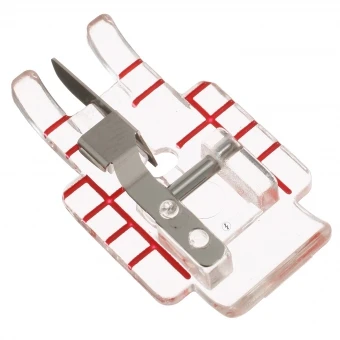 Der HUSQVARNA VIKING Klarischtfuß zum Nähen in der Naht sorgt für eine freie Sicht auf die Naht. Daher eignet er sich besonders zum Quilten im Nahtschatten. Die Markierungen am Fuß erleichtern das Wenden der Ecken bei 1/4″ und 1/8″ Nähten. Dabei sorgt der Tunnel an der Unterseite des Nähfußes für perfekt geformte Nähte und einen reibungsloseren Stofftransport.