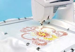 Sticken Sie zuerst die eine Hälfte des Motives ab, drehen den Rahmen um 180° und sticken dann die zweite Hälfte des Motives – so erreichen Sie diese traumhafte Stickgröße ohne den Stoff neu einzuspannen. Kleinere Motive können Sie direkt an der Maschine beliebig im Rahmenbereich verteilen. Zum Teilen eigener Motive, die größer sind als der maximale Stickbereich der Maschine, benötigen Sie eine Sticksoftware. Bei MySewnet steht die Teilungsfunktion ab der Version Silver zur Verfügung.