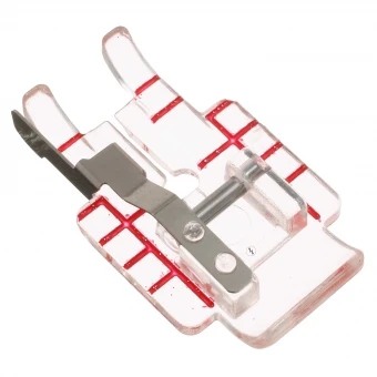 Der HUSQVARNA VIKING transparenter Patchworkfuß mit Führung eignet sich ideal für Quiltstiche in Handarbeitsoptik oder Stepptsiche. Durch die transparenz des Fußes wird immer ein guter Blick auf den Stoff gewährleistet. Die speziellen Markierungen auf dem Fuß erleichtern das Wenden in Ecken bei 1/4″ und 1/8″ Quiltnähten.