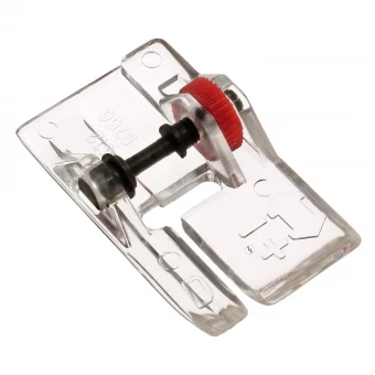 Der einstellbare Blindstichfuß ist seitlich verstellbar. Damit lässt sich genau regulieren, wie viel Stoff beim seitlichen Nadelausschlag erfasst wird.