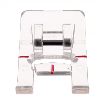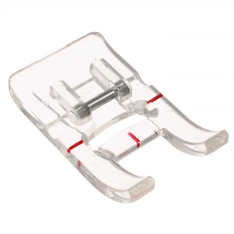 Der HUSQVARNA VIKING Klarichtfuß B eignet sich speziell für Satinstiche, spitz auslaufende Applikationsstiche und Zierstiche. Die Aussparung unter dem Nähfuß sorgt für einen gleichmäßigen Transport. Die roten Markierungslinien verbessern die Positionierung und die Transparenz des Fußes sorgt für eine optimale Sicht auf die Naht.