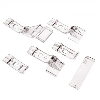 Mit dem transparenten Coverstichfuß haben Sie beim Nähen gute Sicht auf den Stoff und die markierte Linie unter dem Nähfuß. Der Paspelfuß mit Führung eignet sich hervorragend um Paspeln, Biesen und Zierbänder zu gestalten.