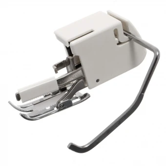 Beim Nähen von Kragen und Revers wird das Stoffverschieben und Aufbeulen minimiert. Selbst bei Zierstichen auf Bändern oder dem Annähen dieser auf andere Stoffe werden die Nähergebnisse optimiert. Für Steppnähte in gleichen Abständen beim Quilten liegt ein Abstands- und Führungslineal bei.
