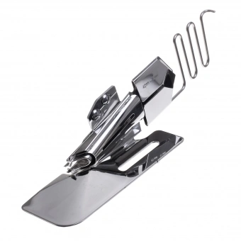 Hinweis: Für Maschinen bis 7 mm Stichbreite wird das JANOME Bandeinfasser-Set 50mm (20CJ10071601) benötigt, bei Maschinen bis 9 mm Stichbreite wird das JANOME Bandeinfasser-Set 50 mm (20CJ15111201) benötigt.
