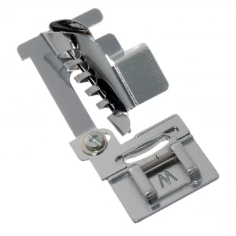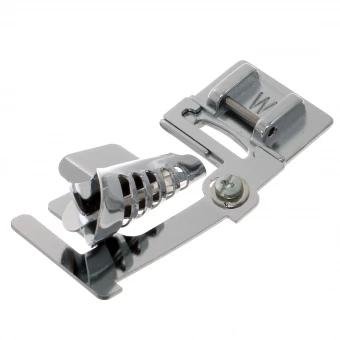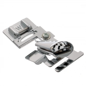 Die trichterförmige Führung formt das Band und legt es direkt um die Stoffkante. Mit einem Zier-, Zick-Zack- oder Geradstich nähen und schon ist die Kante versäubert.