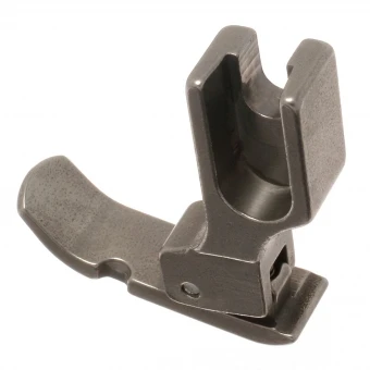 Mit dem beweglichen Kantenfuß und dem Einstich der Nadel auf der rechten Fußseite können Sie Reißverschlüsse schnell verarbeiten oder andere knifflige Näharbeiten an Stoffkanten bewältigen. Seine schmale Form erhöht auch die Transportsicherheit beim Nähen.