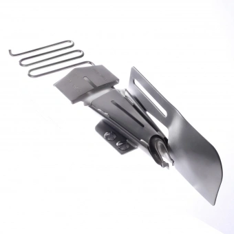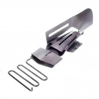 Mit dem JUKI Doppelfaltschrägbinder 48mm/15mm mit Führungsrechen lassen sich Stoffkanten mit einem 48 mm breiten Schrägband einfassen. Das Schrägband wird dabei an der Unter- und Oberseite doppelt umgeschlagen, so ergibt sich eine fertige Bandbreite von 15 mm. Mit Hilfe des Führungsrechen wird das Schrägband optimal zum Doppelfaltschrägbinder geführt.