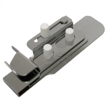 Mit der Saumführung von JUKI wird eine gleichmäßige Führung des umgeschlagenen Stoffes gewährleistet. Es gelingen dadurch auch bei Materialien wie Jersey exakte Säume. Die Saumführung hat eine stufenlos verschiebbare Führungsschiene und wird an der Maschine mithilfe von Einstellschrauben sicher fixiert. Die Breite kann dabei ganz flexiebel ausgewählt werden.