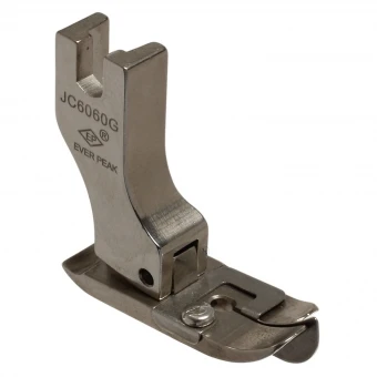 Der JUKI Schmalkantenfuß mit Kantenführung erleichtert das schmalkantige Absteppen. Er eignet sich zudem auch zum Nähen im Nahtschatten oder zum Verbinden von Spitzen und Stoffkanten. Die Metallführung in der Mitte des Fußes sorgt dafür, dass der Abstand zwischen den beiden Stoffen eingehalten wird.