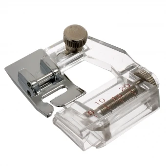 Der Juki Schrägbandeinfasser wurde für das Einfassen mit Schrägband von Stoffkanten oder Halsausschnitten entwickelt.