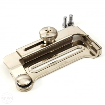 Sehr leicht anzubringen und mittels zwei Schrauben verstellbar, dient der Stoffanschlag dazu um gerade Nähte und Nahtkanten zu nähen.