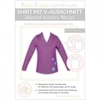 Das lillesol basics No.51 Shirt mit V-Ausschnitt ist ein leicht tailliert geschnittenes Shirt, das wahlweise mit tiefem oder hohem Ausschnitt genäht werden kann. Bei der tiefen Ausschnitt-Variante kann besonders schön ein Top oder eine Bluse darunter getragen werden.