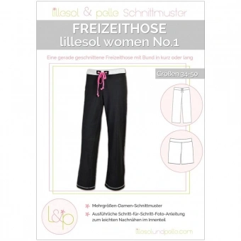 Das lillesol women No.1 Freizeithose ist eine leger geschnittene Hose mit geradem Bein, die aus dehnbaren Materialien wie Jersey genäht wird. Die Hose lässt sich beliebig kürzen, so dass schnell eine kurze Hose oder eine Dreiviertelhose genäht ist.