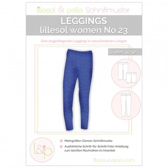 Die lillesol women No.23 Leggings ist eine leicht zu nähende Basic-Leggings ohne äußere Seitennaht, wahlweise in knöchellang, Capri-Länge oder als Radlerhose.