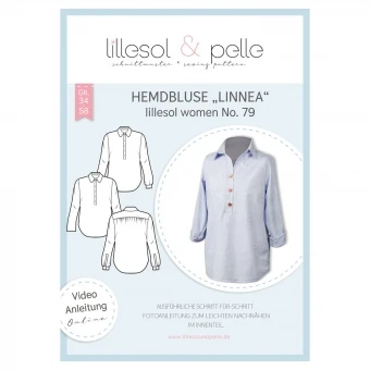 Das LILLESOL Women Papierschnittmuster No. 79 ist ein lässig geschnittenes Blusenshirt mit halber Knopfleiste und einen klassischen Steg mit Kragen. Dabei können die Ärmel optional mit Manschetten genäht oder gesäumt werden. Die hochgekrempelten Ärmel können wahlweise auch mit einem Riegel befestigt werden. Auf der Rückseite der Bluse wird eine Passe und ein gekräuseltes Rückenteil genäht. Für eine ideale Passform werden an der Vorderseite Brustabnäher angebracht.
