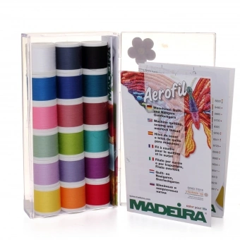 Die MADEIRA Nähgarnbox Aerofil enthält 18 unterschiedliche Farben in sommerlichen Tönen. Das Aerofil No. 120 ist ein hochwertiges und geschmeidiges Nähgarn für alle Stoffe und Nähte auf 400m Snapspulen. Es besitzt eine hohe Reiß- und Scheuerfestigkeit, dadurch eignet sich Aerofil auch für belastbare Nähte und ist für alle Näh-, Overlock-, und Coverlockmaschinen geeignet.