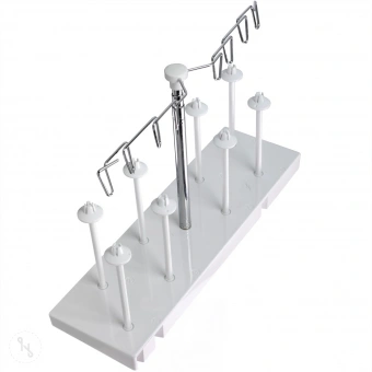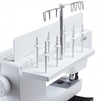 Mit dem praktischen PFAFF Acht-Garnrollenständer wird die Farbreihenfolge beim Sticken vorsortiert. Damit geht das Sticken noch leichter von der Hand. Durch den einfachen Klickverschluss ist dieser leicht aufzusetzen und abzunehmen. Er findet seinen Platz an der Rückseite der Maschine und bietet Platz für bis zu acht Garne. Zur Erleichterung des Stickfarbenwechsels sind diese nummeriert.