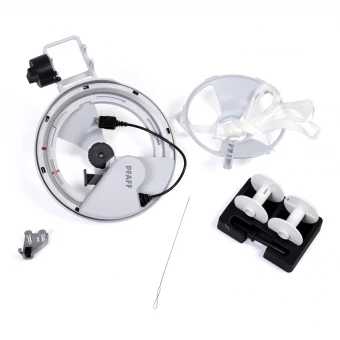 Mit dem Pfaff creative Stickset für Bänder, Wolle und Perlen lassen sich einzigartige Effekte auf Stickprojekten kreieren. Das Gerät rotiert dabei um 360 Grad, sodass die Verzierungen vollständig und perfekt geführt werden. Mithilfe des Sets können Bänder, Perlen, Garn sowie Kordeln ganz einfach der Stickerei hinzugefügt werden. Außerdem kann das creative Stickset Materialien bis zu acht Meter verabeiten. Auch ein Anpassen an unterschiedliche Bandbreiten ist problemlos möglich. Zudem wird das Aufwickeln und Laden des Materials durch den erweiterten Halter erleichtert. So lässt sich jedes Stickprojekt im Handumdrehen mit tollen Effekten optisch aufwerten.