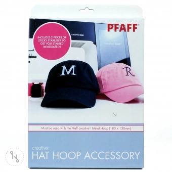 Mit dem Kappenrahmen-Zubehör von PFAFF können individuelle Designs auf alle Arten von Kopfbedeckungen gestickt werden. Geeignet ist diese Arbeitshilfe für den 180 x 130 mm großen Magnet-Metallrahmen.