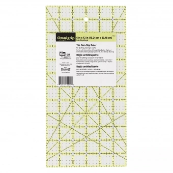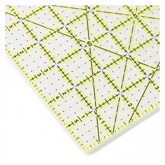 Ein grün/schwarzer Rasterdruck ermöglicht genaue Markierungen auf hellen und dunklen Stoffen. Das dicke, widerstandsfähige Material gewährleistet eine sichere Führung von Rollschneidern und Ziehmessern. Ein absolut präziser Laserdruck auf der Unterseite des Lineals schliesst optische Verzerrungen aus. Dieses Lineal ist mit einer speziellen Beschichtung versehen und rutscht somit nicht ab.