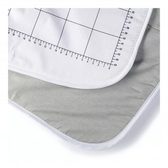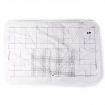 Dies ist eine leichte, hitzereflektierende Bügelunterlage zum Bügeln auf allen ebenen Oberflächen. Die Unterlage ist beidseitig verwendbar und die Rückseite verfügt über cm Raster und Winkelmarkierungen.