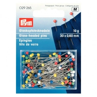 Mit einem hitzebeständigen, runden Kopf sind die Glaskopfstecknadeln von PRYM ausgestattet. Der Kopf besteht aus hochwertigem Glas. Durch den aus gehärtetem Stahl gefertigten glatten Schaft weist die Nadel eine ausgewogene Federhärte auf und bricht nicht ab oder verbiegt sich. Die Stofffasern werden durch die feine Spitze geschont. Die Nadeln sind 30 mm lang, in einer Packung sind 10 g enthalten.